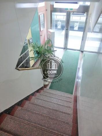均一に並べられた窓面が美しい存在感のあるオフィスビルです。エントランスは赤い絨毯が敷かれており、高級感があり、来客の際も印象が良いのではないでしょうか。前面の道、側面の道、共に広く窓からの眺望も期待出来ます。