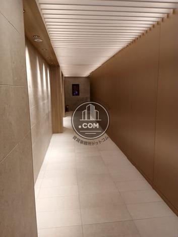 均一に並べられた窓面が美しい存在感のあるオフィスビルです。エントランスは赤い絨毯が敷かれており、高級感があり、来客の際も印象が良いのではないでしょうか。前面の道、側面の道、共に広く窓からの眺望も期待出来ます。