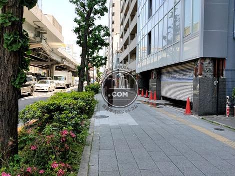 外観はシンプルで、1階に飲食店舗が入居しているオフィスビルです。正面入口は前面道路から数段おりた位置にあります。24時間使用可能ですが、エントランスには防犯カメラ、機械警備もあるので安心のセキュリティ体制です。周辺は飲食店が多数あり、お昼時は人通りが多いエリアとなります。