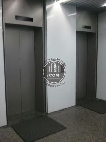 人形町駅と小伝馬町駅のちょうど中間で両駅共に徒歩4分、人形町通りの堀留町交差点にある賃貸オフィスビルです。1993年築・地上9階建ての建物はかなり変形の敷地に建てられており、通り沿いの正面外観はダークトーンでスタイリッシュな装いですが間口が細くスリムな構造です。貸室基準階は150坪近いボリュームで、変形の凸箇所にエレベーターホールや男女別トイレまたは駐車場設備などコア部分を配置し執務空間は正方形に近い形状という工夫された設計がなされています。外観とは対照的に光沢のある真っ白な大理石で仕上げ、照明効果で鮮やかに映えるエントランスホールもシンプルながらとても上質な空間です。