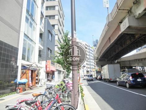 木挽町通りに面した、白い外壁が特徴の物件になります。エレベーター前には防犯カメラが設置されております。近くには昭和通りが通っておりますが、落ち着いた環境の中にあるビルです。