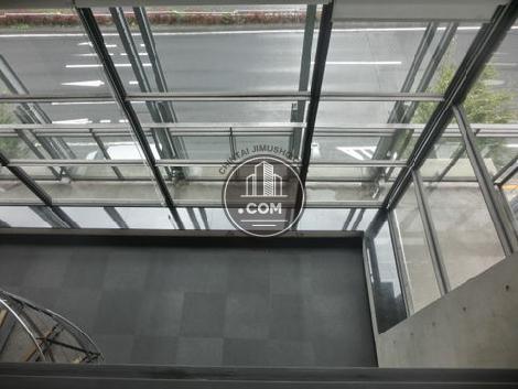 可愛らしいピンク色の外壁が洒落なビルです。エントランス内の床はタイル張りで、照明も明るく天井が曲線になっていました。オフィス内は2か所にバルコニーがあり開放的な空間ですね。