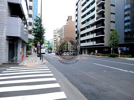 靖国通りから一本入った立地にあるオフィスビルです。一階入り口が広々としておりゆったりとした余裕な雰囲気がありました。エントランスアプローチは長くとられ、白を基調とした清潔感ある造りが好印象でした。