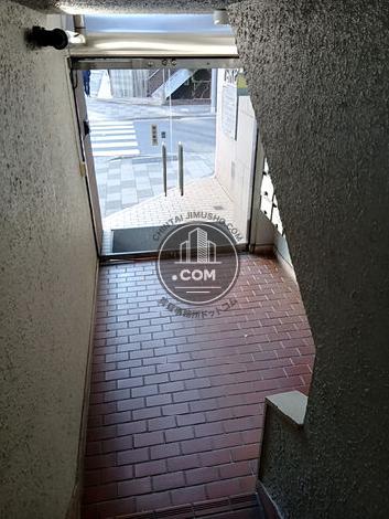 外観はシンプルで、1階に飲食店舗が入居しているオフィスビルです。正面入口は前面道路から数段おりた位置にあります。24時間使用可能ですが、エントランスには防犯カメラ、機械警備もあるので安心のセキュリティ体制です。周辺は飲食店が多数あり、お昼時は人通りが多いエリアとなります。
